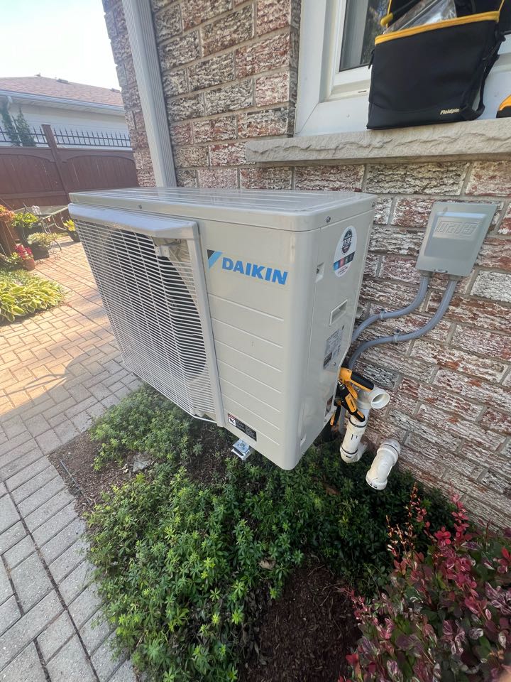 Servicing a Daikin heat pump for a family in the Country Hills area of Kitchener