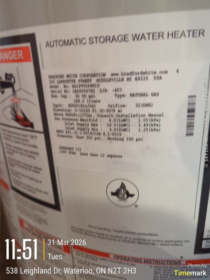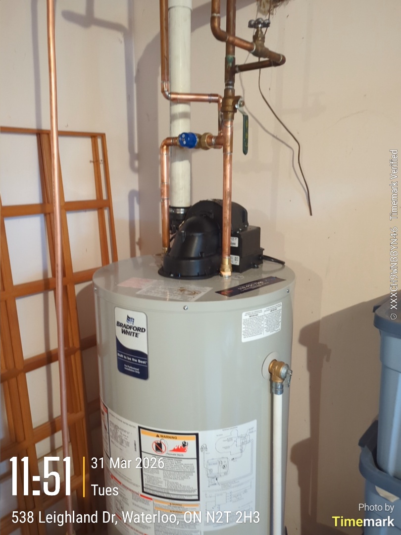 Completing a Bradford White Water heater install for a family in the Beechwood area of Waterloo